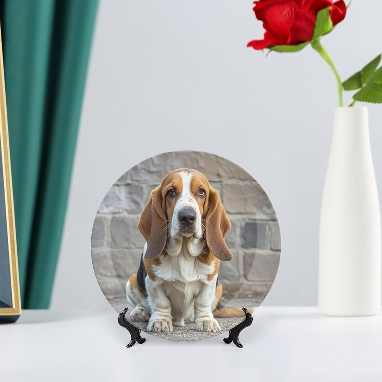 Decorative Plate for Display, Bone China Decorative Plate, Ceramic Dinner Plate with Stand, Vertical Ceramic Plate for Home Office Kitchen Table/Wall Hanging Decor