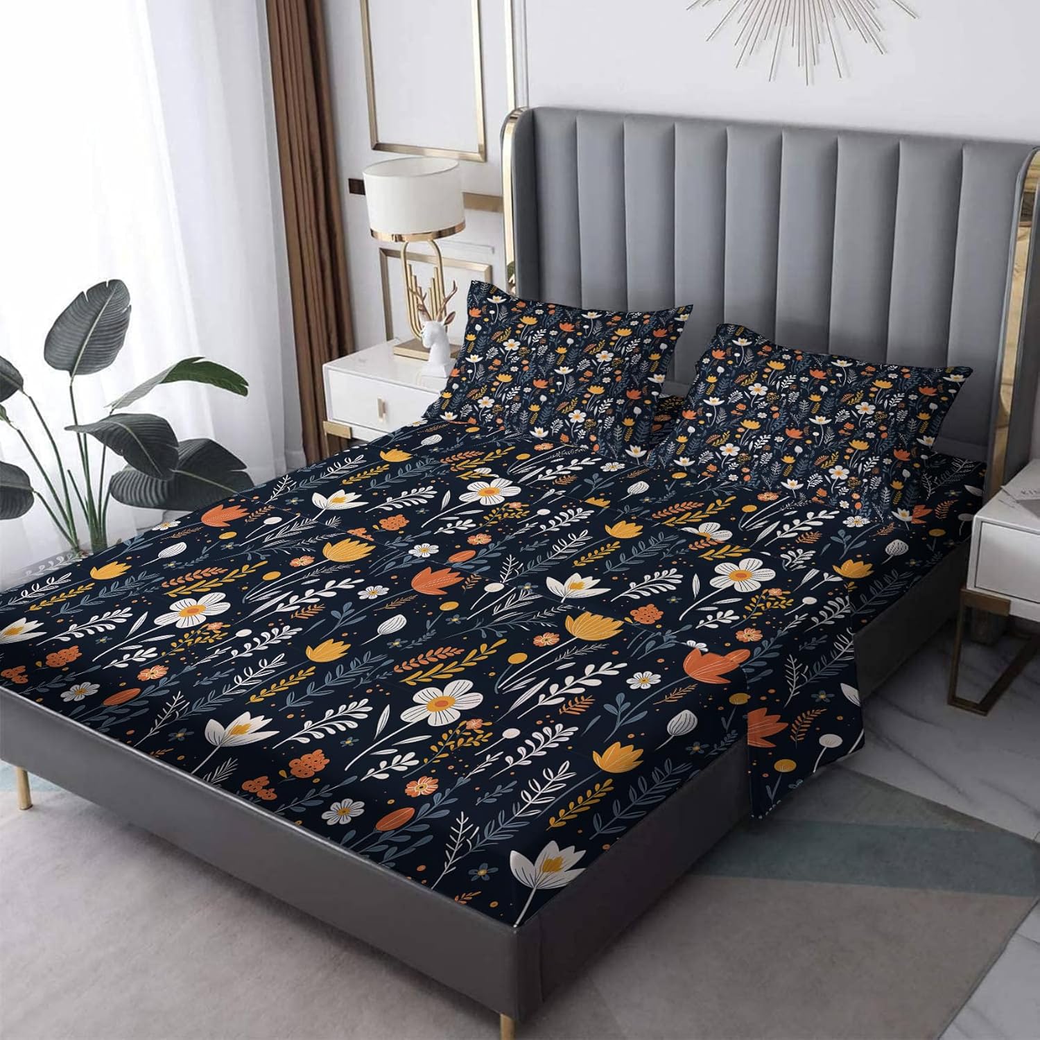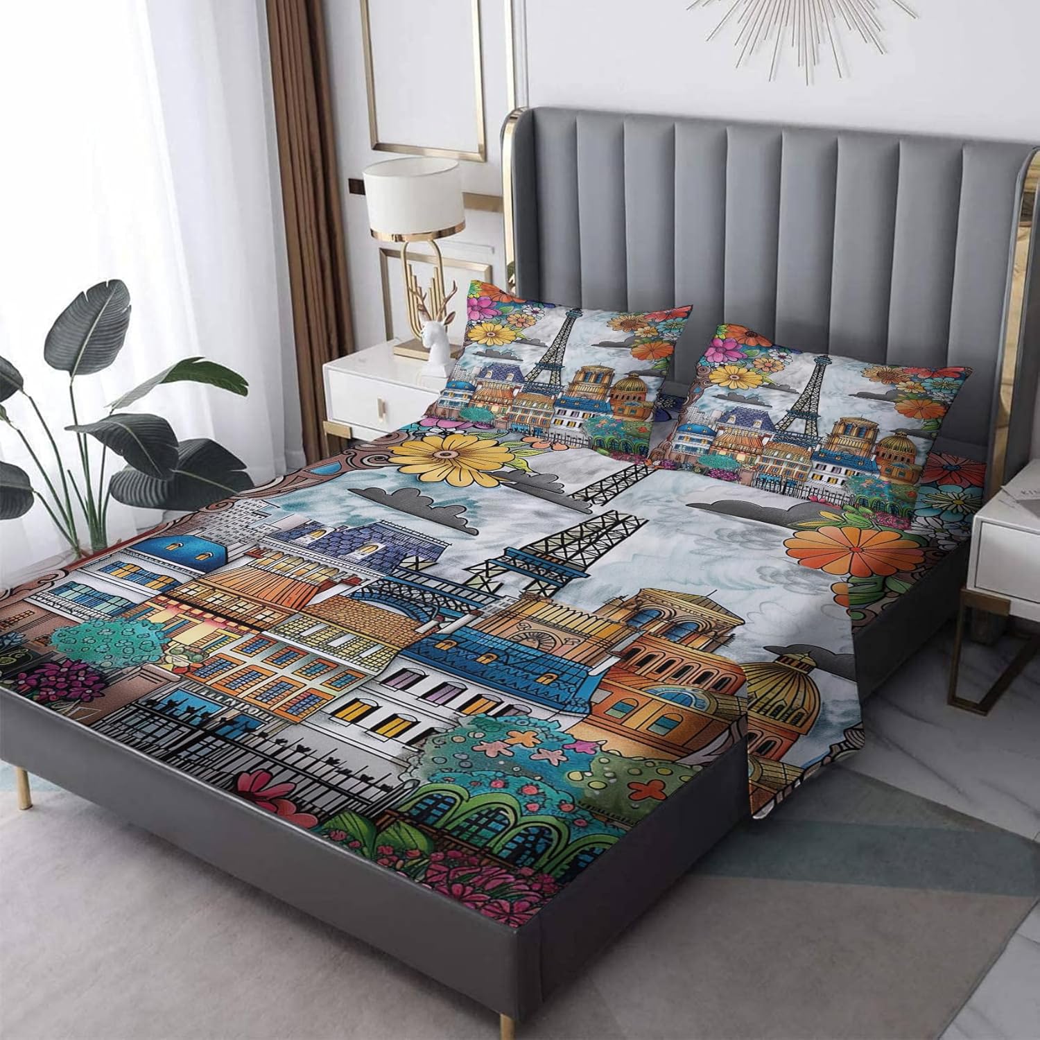 • 4 Pc Full Sized Sheets Set - 1 flat sheet 81" x 96"; 1 fitted sheet 54" x 75" + 16" and 2 pillow case 20" x 26". Our decorative printed sheets can easily change the style of the room