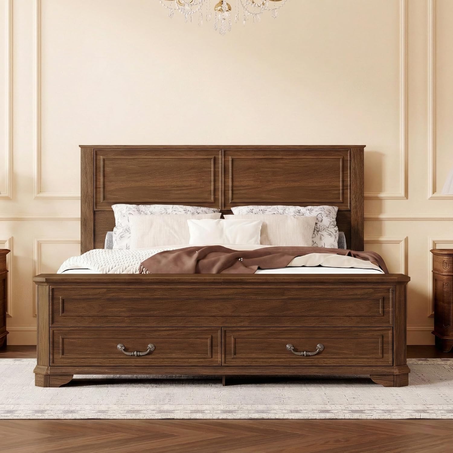• [Elegant Farmhouse Style]This queen-sized bed, reminiscent of the timeless allure of a rural farmhouse, is meticulously crafted to elevate the aesthetic appeal of your bedroom.The rustic finish and timeless farmhouse design complement both modern and traditional décor, making this bed frame a stylish, functional centerpiece for any bedroom.