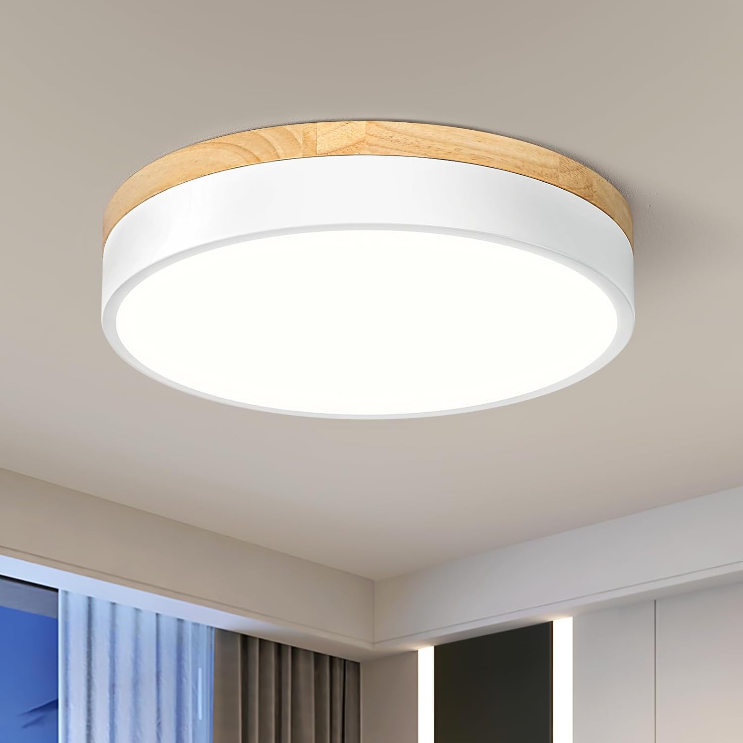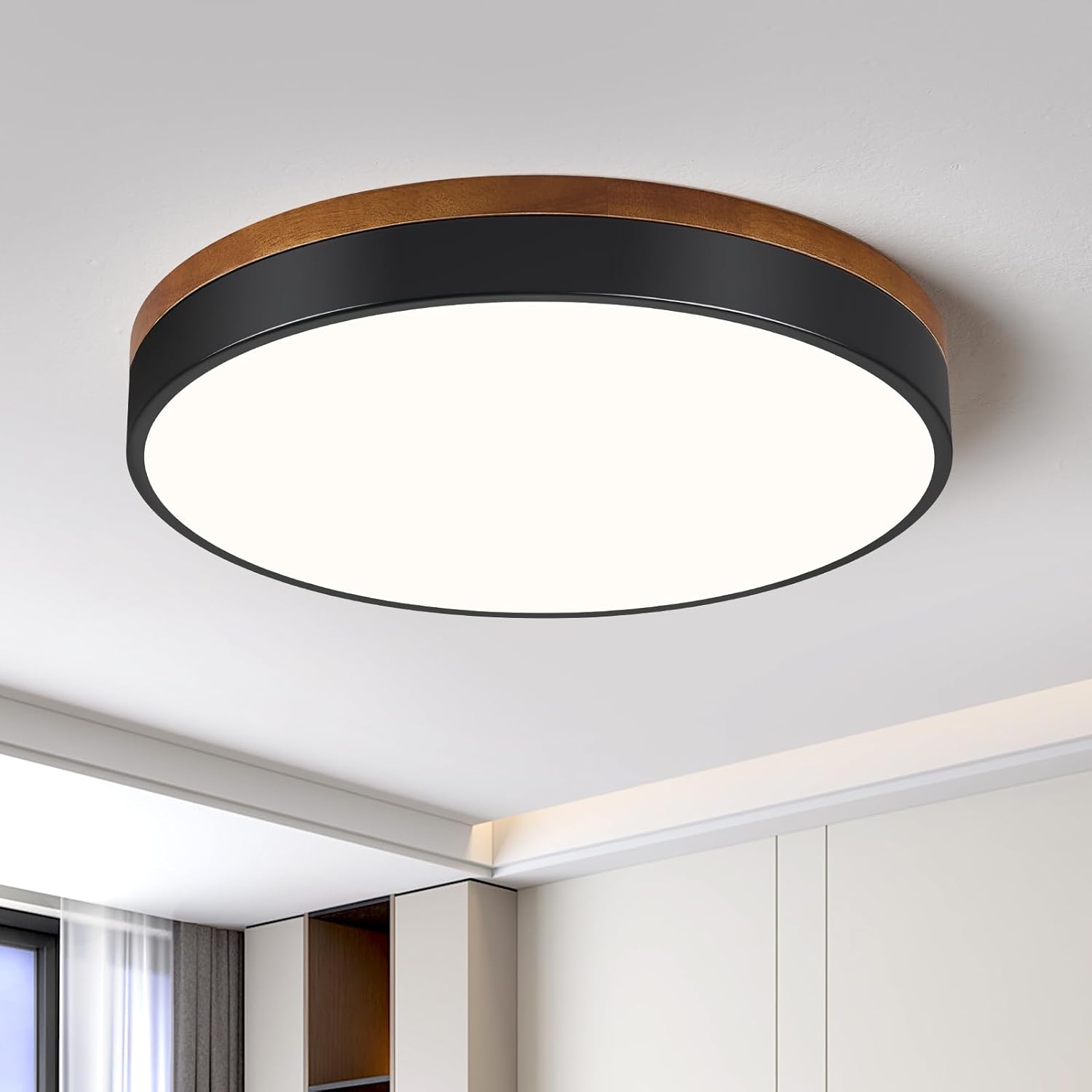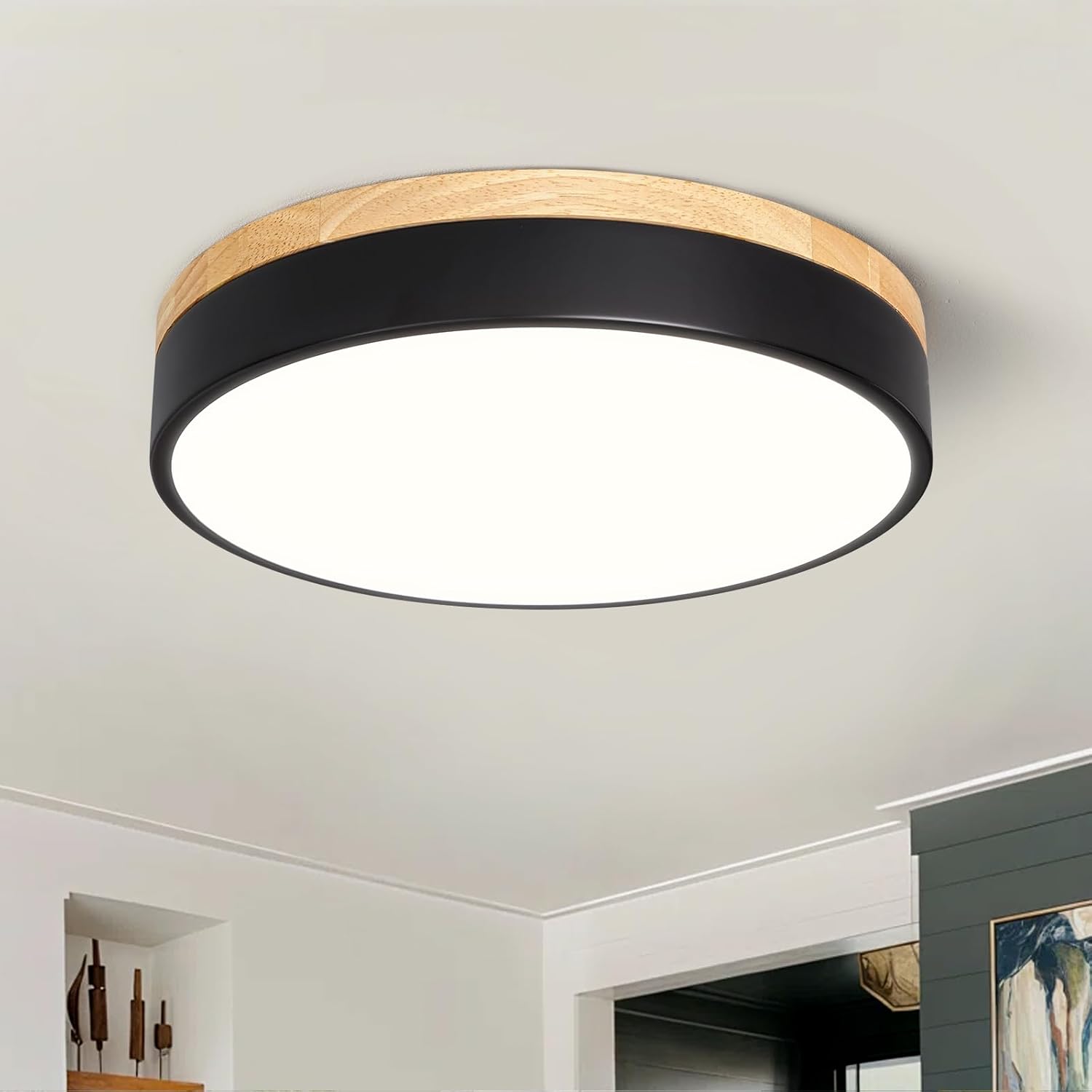 | Embellishment Feature | Black LED Light Fixtures Ceiling, Farmhouse Ceiling Light Fixture, Minimalist Flush Mount Ceiling Light, Modern Ceiling Light, Wood Light Fixtures Ceiling Mount |