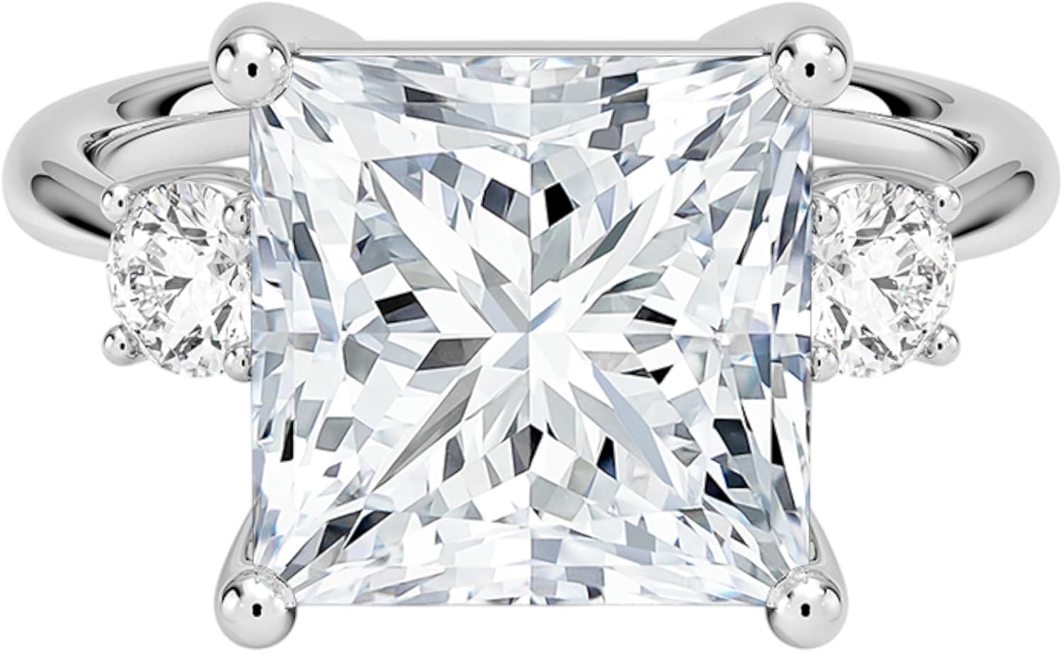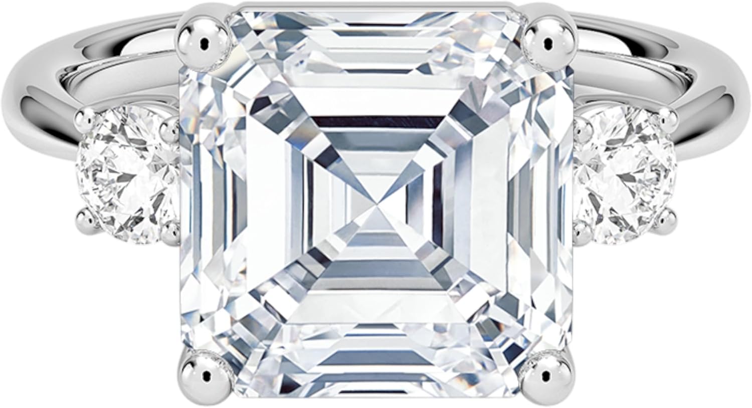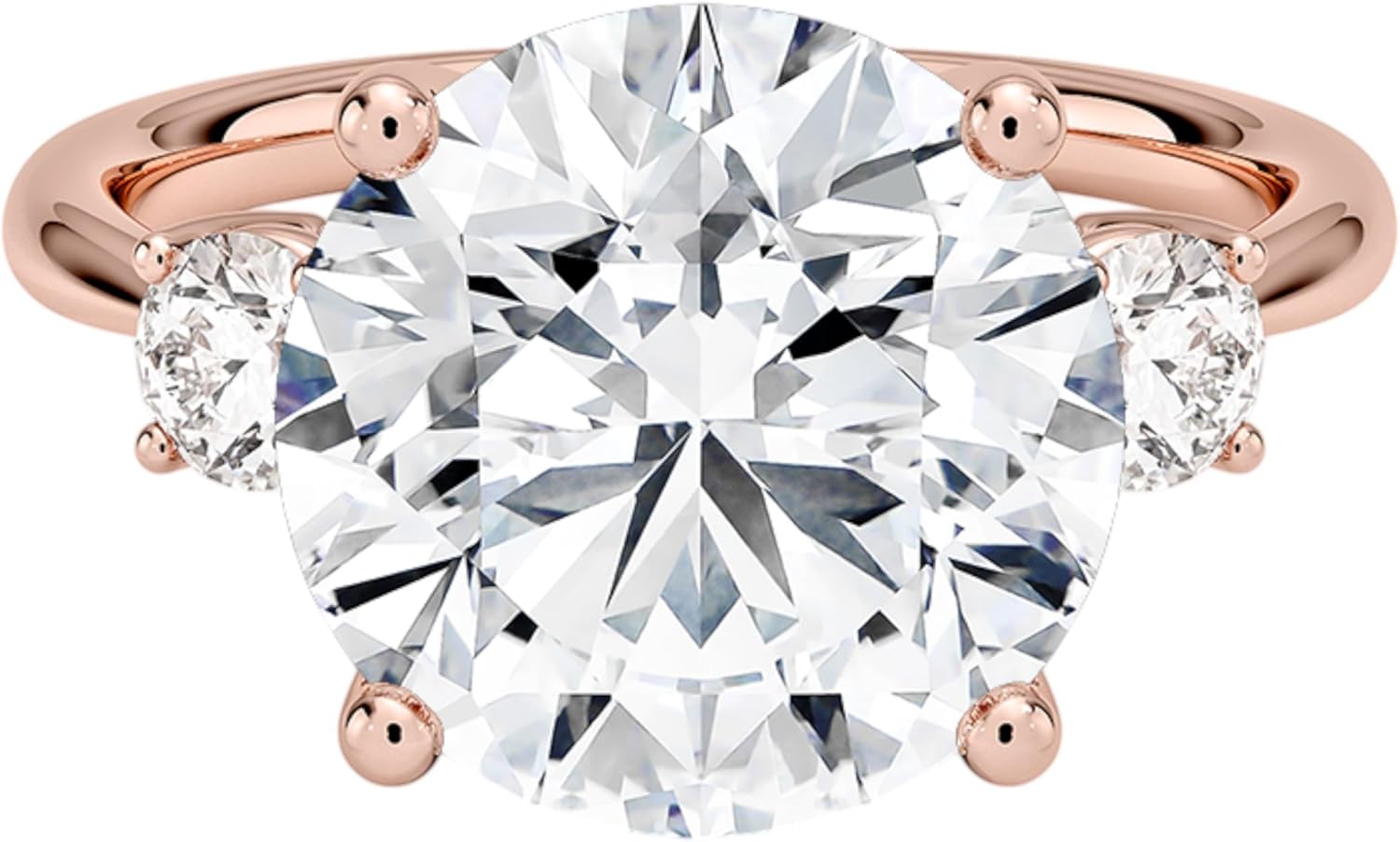 THE DESIGN STORY: Past, Present, & FutureMore than just a ring, this Three-Stone design tells your unique love story. The two side stones represent your shared past and future, while the brilliant center stone celebrates your beautiful present. A romantic masterpiece symbolizing a love that grows stronger with time.Experience the Brilliance of Sustainable LuxuryCelebrate your love with a masterpiece that combines luxury and ethics. This handcrafted Lab Grown Diamond ring features an exceptional Center Stone, enhanced by sparkling side diamonds. It offers the exact same chemical composition and brilliance as a mined diamond at an incredible value.WHY CHOOSE OUR LAB GROWN DIAMONDS?Real Diamond: Chemically, physically, and optically identical to mined diamonds.Ethical Luxury: 100% Conflict-Free and environmentally friendly.Value: Get a bigger, brighter diamond for your budget without compromising on quality.CENTER STONE DETAILSGemstone: Real Lab Grown Diamond (CVD/HPHT)Available Shapes & Sizes:Asscher: 5 CT (9.5 x 9.5 mm Approx.)Cushion: 5 CT (10 x 10 mm Approx.)Emerald: 5 CT (11.25 x 8 mm Approx.)Oval: 5 CT (13.5 x 9.5 mm Approx.)Princess: 5 CT (9.5 x 9.5 mm Approx.)Radiant: 5 CT (10.8 x 8.5 mm Approx.)Round: 5 CT (10.70 - 10.90 x 10.70 - 10.90 mm Approx.)Color Grade: E-F (Colorless – Top Tier)Clarity Grade: VVS2 (Exceptional Clarity – Eye Clean)Cut Quality: Excellent/Ideal CutSetting Type: ProngSIDE STONE DETAILSGemstone: Real Lab Grown Diamond (CVD/HPHT)Shape: RoundCarat Weight: 0.29 CT TotalColor: DClarity: VVS2Setting Type: ProngMETAL & CRAFTSMANSHIPPremium Options: Solid 10K, 14K, 18K Gold (Yellow, White, Rose) or 925 Sterling Silver.Authenticity: Stamped/Hallmarked with metal purity (e.g., 14K, 18K, 925).Band Width: 2 mm approx. (Comfort Fit).Finish: High Polish for a brilliant, long-lasting premium shine.THE PERFECT GIFT & SUPPORTArrives in a Signature Jewelry Box. We are dedicated to your complete satisfaction; please contact us via Amazon Messages for any sizing or customization requests.Please note: Weights and measurements may vary slightly by ring size and handcrafted finishing.