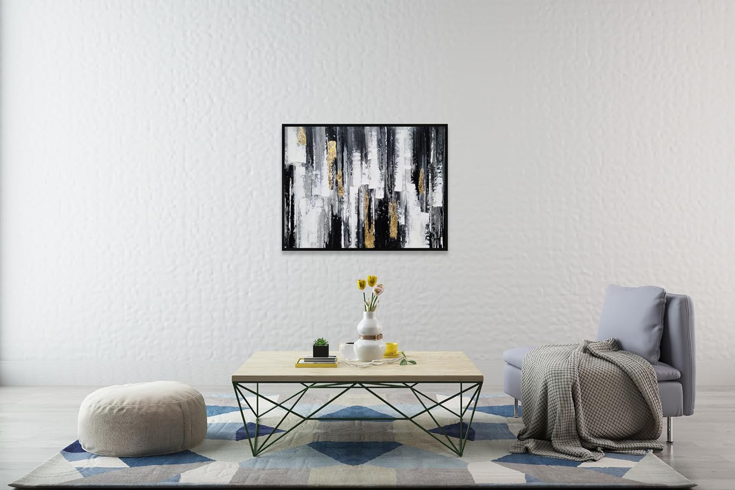 Immerse your living space in the captivating allure of the Yihui Arts Black White Canvas Wall Art. This striking artwork boasts a mesmerizing abstract painting, intricately adorned with opulent gold foil accents. Meticulously hand painted by skilled artists, each piece exudes a contemporary and modern aesthetic, creating a captivating focal point for your living room or bedroom decor. The huge size of this artwork ensures it commands attention, making it an impressive addition to any interior space. The exquisite blend of black, white, and gold tones infuses a sense of elegance and sophistication into your home, elevating the ambiance with a touch of luxury. Embrace the allure of contemporary artwork with this exclusive Yihui Arts piece, meticulously crafted to add a unique dimension to your decor. Whether adorning your living room or bedroom, this hand painted canvas promises to captivate with its modern aesthetic, seamlessly blending into any interior style. Transform your living space with this exceptional artwork, designed to evoke a sense of refinement and style. Embrace the harmonious fusion of modernity and classic elegance, and let the Yihui Arts Black White Canvas Wall Art become the centerpiece of your home decor.