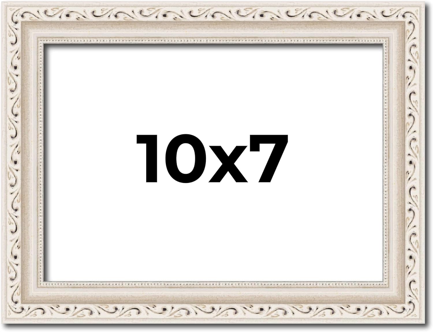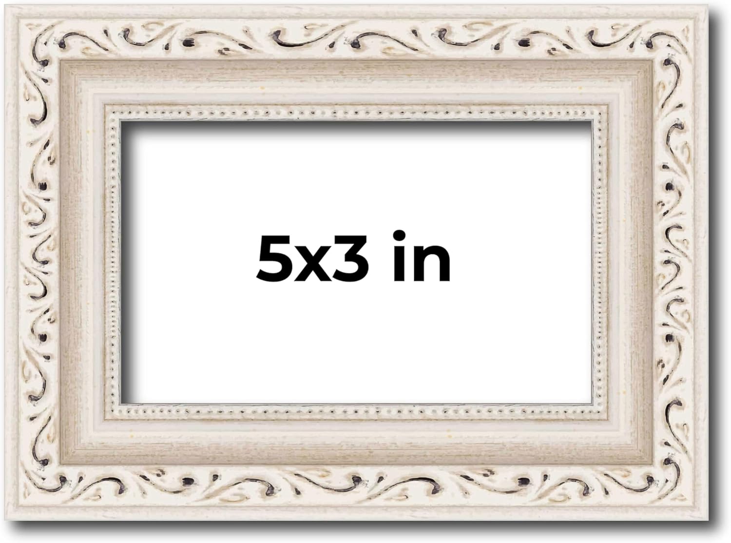 ⭐ COMPLETE WOOD PICTURE FRAME: Ornate Off-White Finish - Made To Display Photos, Artwork, Canvases, Chalk Boards, Documents, Mirrors, Puzzles, Mementos, Kids Drawings, Bulletin Boards, Diplomas, Certificates, and All Other Media Measuring 3.5x5 inches (8.89x12.7 cm). ⭐ PERFECT FIT EVERY TIME: Overall Frame Dimensions Measure 6x7.5 inches (15.24x19.05 cm). ⭐ ADD TO YOUR HOMES DECOR: Frame Moulding Width: 1.25 Inches (3.18 cm). || Frame Rabbet Depth: 3/8 Inches (0.95 cm). ⭐ DISPLAY WITH CONFIDENCE: Complete frame with UV Resistant Acrylic Front, Acid Free Foam Board Backing, and Hardware. ⭐ WALL HANGERS INCLUDED: Hanging hardware is included but not installed—easily attach for vertical or horizontal display. MANUFACTURED IN THE USA
