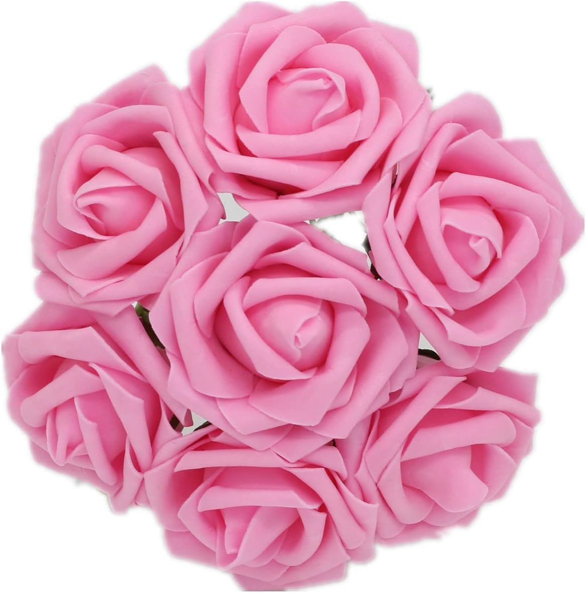 These flowers are made of a kind of soft foam material, the flower heads diameter are about 7-8cm, and stems are about 24cm. The stems is very think about 2mm, they can be easily bent to any shape you want and can also be cut down as you need. They made perfect DIY decoration to dinner tables, reception and cake table. They are natural looking. Generally we use about 26-30 flowers to make a bridal bouquet, 20 flowers to make a bridesmaids bouquet. And they can also be used to make kissing balls, the stems can be removable. Finally i should highlight that if you use the flowers to make bouquet, and display the stems, you maybe add something else as handle because the stems are thin. Please feel free to contact us if there's any other question.