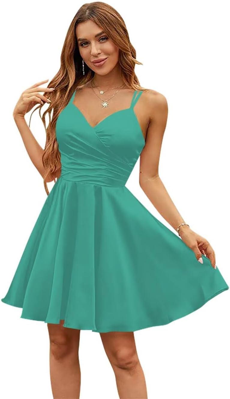 | Embellishment Feature | lace-up homecoming dress, spaghetti straps short ball gown, v neck mini dress, v neck short formal dress, v neck short prom dress |